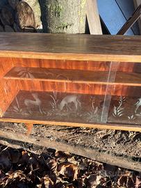 Vendo credenza in legno vintage con ante in vetro scorrevoli ancora in buone condizioni , con dei cervi disegnati