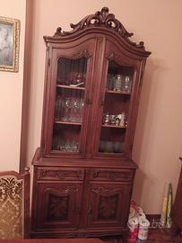 Bellissima credenza in legno con vetrinetta, 2 cassetti e 2 portelli con intarsi. Prezzo da concordare.