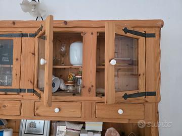 credenza rustica in legno di abete. Pomoli bianchi ma anche disponibili i suoi originali in legno. come nuova misure 220x200x45