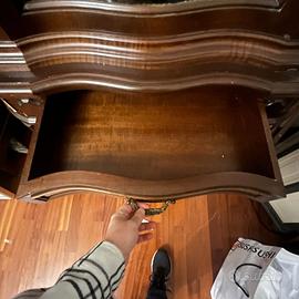 Vendo credenza in legno massello dallo stile classico e decorativo, ideale per arredare con carattere un soggiorno o una sala da pranzo. Il mobile è completamente realizzato in legno ed è composto da una parte superiore profilata con ante in vetro, impreziosita da una cornice sagomata, perfetta per esporre servizi, bicchieri o oggetti decorativi. La parte inferiore dispone di tre cassetti centrali e tre ante, con piccoli armadi separati all’interno, che offrono ampio spazio contenitivo. La credenza si presenta solida, ben rifinita e di grande presenza estetica, adatta a chi cerca un mobile classico, elegante e senza tempo. È possibile visionarla e organizzare il ritiro esclusivamente tra il 13 e il 15 febbraio. Per ulteriori informazioni non esitate a contattarmi.