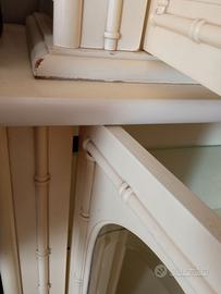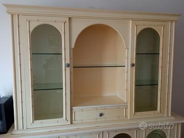 Credenza in legno laccato con mensole in vetro, la laccatura è rovinata in alcuni punti visibili in foto. Misure 200x203h. Ritiro a domicilio a carico dell'acquirente, terzo piano.