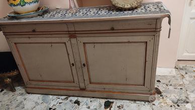 Vendo per trasferimento credenza in legno laccato grigio, 2 cassetti e 2 sportelli sul fronte tra lesene scanalate, ben conservato e tenuto bene, misure Lunghezza cm 177 Altezza cm 99 e profondità cm 55. € 300,00 solo ritiro a mano.