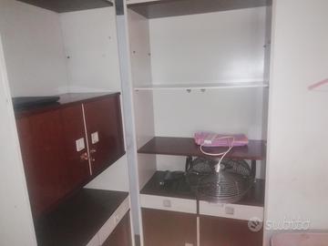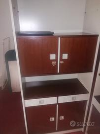 Credenza in legno formato cassettiera con diversi cassetti alti e bassi e ripiani. Materiale in legno solida e robusta