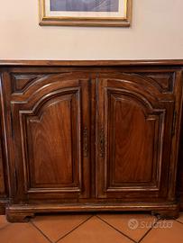 Credenza in legno massello di noce, anno di acquisto 1980. 4 ante e 2 cassetti. Misure: Lunghezza 215 cm Profondità max 48 cm Altezza 95 cm Ottimo stato. Ritiro a carico dell’acquirente. Prezzo leggermente trattabile