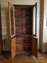 Credenza con vetrina in legno massello, ben tenuta, ideale per l’esposizione di oggetti decorativi o stoviglie, divisa in due parti: