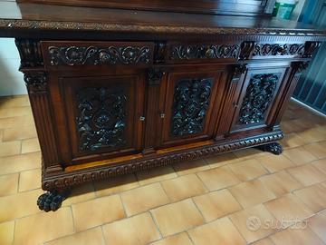 Credenza in legno massello,qualche imperfezione come si può vedere in foto ma facilmente ripristinabile. Stile barocco dell'800/900. Fatta a mano da artigiano