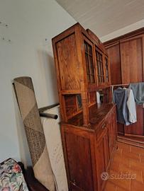 Credenza in legno massello, suddivisa in due blocchi, stile liberty/arts e crafts. Presenta vetri lavorati ma mancante a destra; complessivamente si trova in buone condizioni. Prezzo trattabile; ritiro in loco.