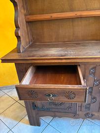 Vendo splendida credenza in legno massello in stile Val Varaita, completamente intagliata a mano con motivi geometrici e decorazioni tradizionali.