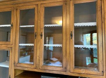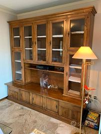 2 vetrine laterali e 3 centrali, piano d'appoggio porta TV e mensola per lettore DVD.