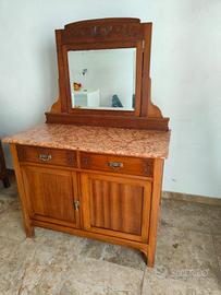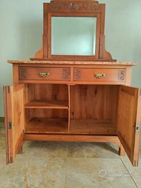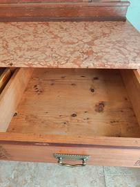 Credenza fine '800 inizio 1900 Lunghezza marmo: 110cm Larghezza 50.5cm Altezza da terra al marmo 106.5cm con vetro + 77cm Marmo rosso di Verona