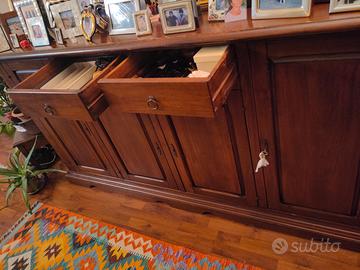 Credenza in legno con linee essenziali adatta ad ogni ambiente. Misure: -Lunghezza: 210 cm -Profonditá: 50 cm -Altezza: 110 cm