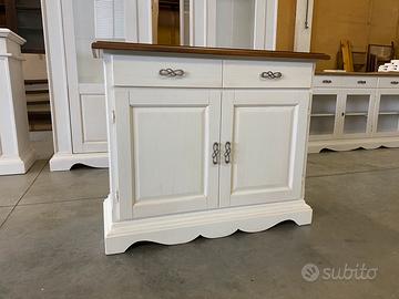 Mobile credenza da azienda produttrice di mobili, nuovo imballato, in legno con 2 ante e 2 cassetti, vano centrale interno molto capiente, in tinta bianco patinato con piano in noce grano.