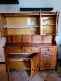 Credenza in legno con cassetti e sportelli con vetro. Possibilità di abbinare tavolo con panche contenitive venduto separatamente.