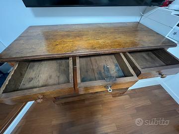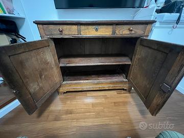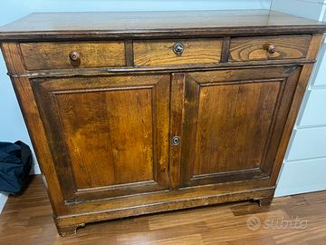 Credenza molto capiente in buone condizioni da riverniciare in alcuni punti. Misure: - larghezza 130cm - altezza 105 cm - profondità 55 cm
