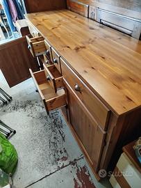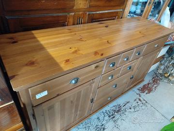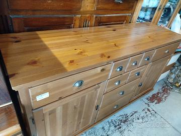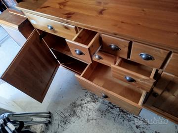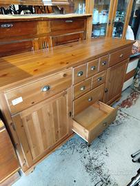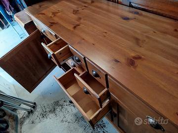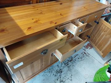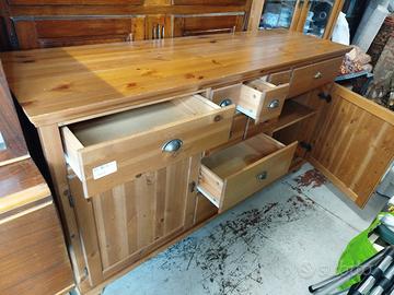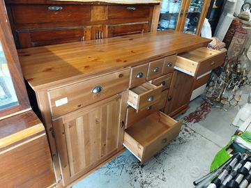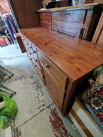 Credenza stile rustico in legno di rovere con due ante, quattro cassetti e cinque cassettini. Misure: (165 x 50 h. 90) Ottime condizioni!