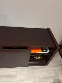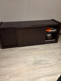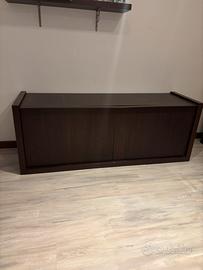 Credenza in legno scuro con ante scorrevoli
