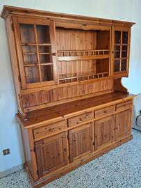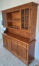 Vendo credenza in legno, stile rustico, solida e molto capiente, ideale per cucina, sala da pranzo o taverna. Il mobile è composto da: parte superiore con vetrine laterali e ripiani a vista ampio piano d’appoggio parte inferiore con cassetti e ante molto spaziosi ✨ Caratteristiche: Legno robusto e di qualità Design caldo e accogliente, perfetto per ambienti rustici o classici Ottima capacità contenitiva Condizioni molto buone, pronta all’uso 📏 Misure: Lunghezza: 195 cm Profondità: 46 cm Altezza: 206 cm Ideale per chi cerca un mobile elegante ma funzionale, con grande spazio per stoviglie, oggetti o dispensa. 📍 Ritiro a mano (vista la dimensione) 💬 Per info o altre foto scrivimi senza problemi!
