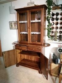 Credenza dal design classico ed essenziale con vetrina a tre ripiani.
