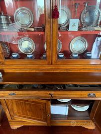 Credenza in legno di noce di fine ’800, composta da parte inferiore con ante e vetrina superiore con ripiani interni. Ottime condizioni.