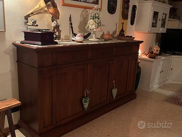 Vendo credenza in legno massello tenuta molto bene. Misure: lunghezza 2,30 cm Altezza 1,15 cm Profondità 54 cm Eventuale possibilità di trasporto a carico del destinatario