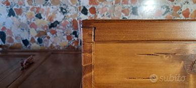 - base con 2 ante e 3 ripiani interni + scomparto segreto, 3 cassetti, di dimensioni: larghezza 135 cm, altezza 102 cm, profondità 42 cm;