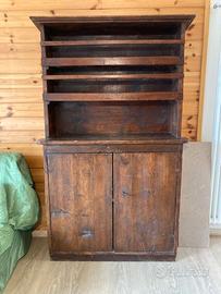 Splendida credenza in legno di noce, tre ripiani a giorno e due ripiani in basso protetti da ante. Usato ma ben conservato.