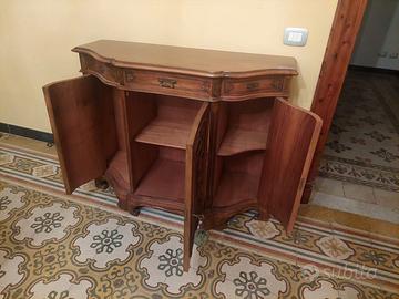 Credenza in stile dal fronte mosso a tre specchi con cassetti ed antine,in legno di noce