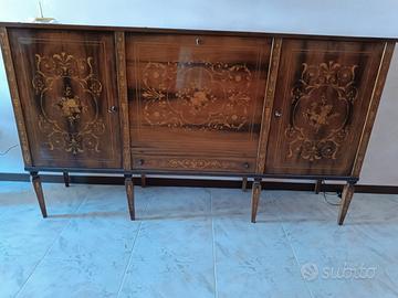 Vendo splendida credenza in stile Luigi XVI, dalle linee eleganti e raffinate, caratterizzata da un pregiato intarsio in legno con motivi neoclassici su ante e gambe.