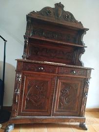 Credenza in stile rinascimentale in noce riccamente scolpita, fine '800 primi del '900