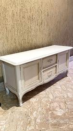 Credenza in noce, colore bianco in stile antico con 2 ante e 2 cassetti, nuova mai utilizzata.