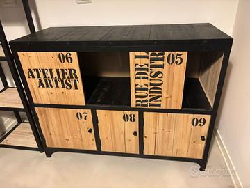 Credenza con ante scorrevoli e battenti - Struttura in metallo Nero Ante in legno di abete L.110 P.45 H.85 Maisons du Monde