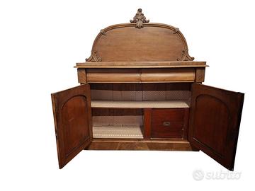 Bella credenza inglese, epoca fine 1800, in legno di mogano massello, con alzata, pratica ed elegante, restaurata "a nudo" (legno perfettamente ripulito e solo incerato con cera d'api naturale per esaltare la bellezza del legno)