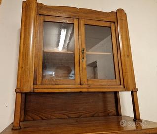 Credenza dei primi del 900, completamente restaurata in condizioni perfette. Composta da mobile con ante e cassetti prive di chiodi tutta ad incastro e vetrinetta superiore con vetri originali fatti a mano. Altezza 206 cm, larghezza 114 cm e profondità 51 cm.