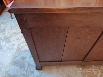 Elegante credenza italiana a due ante con cassetti superiori, realizzata tra la fine del XIX e i primi decenni del XX secolo. Il mobile è riconducibile allo stile Luigi Filippo / Umbertino sobrio, caratterizzato da linee pulite ed equilibrate, pannelli sagomati sulle ante e proporzioni armoniose. La struttura è solida e ben conservata, pensata originariamente per sala da pranzo o soggiorno. La credenza presenta: Due cassetti superiori Due ante battenti con pannellature sagomate Serrature originali, una con chiave e nappina decorativa Schiena in tavole di legno massello, tipica dell’epoca La patina originale è presente e non alterata da restauri recenti. Condizioni Buone condizioni generali. Sono presenti normali segni del tempo (abrasioni, leggere scoloriture su lati e retro), coerenti con l’età del mobile. Strutturalmente stabile. Non restaurata di recente. Materiali Struttura in legno massello,Impiallacciatura di noce,schiena in tavole di legno, ferramenta in ottone Periodo 1900–1920 circa Provenienza Italia Possibilità di consegna fronte strada in tutta Italia costo 150 eu ma da verificare in base alla destinazione