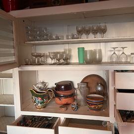 Credenza laccata bianca tutta originale integra completa di ripiani maniglie vetri e cassetti. pronta da usare . mobile vintage di tendenza vendo per ristrutturazione casa misura circa 180 x 40 h 200 cm da vedere a cossato bi su appuntamento se ti interessa contattami