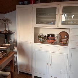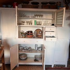 Credenza laccata bianca tutta originale integra completa di ripiani maniglie vetri e cassetti. pronta da usare . mobile vintage di tendenza vendo per ristrutturazione casa misura circa 180 x 40 h 200 cm da vedere a cossato bi su appuntamento se ti interessa contattami