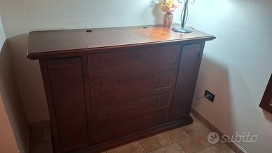Credenza legno massello con cassetti e anta scrivania con specchio misure 55x145x100
