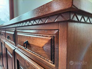 Credenza legno massiccio con 4 ante e 4 cassetti