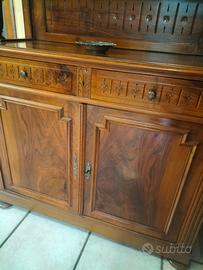 credenza ciliegio,primi 900 in stile liberty , con vetrina due ripiani., 4 ante, ,intarsiata, eottime condizioni .