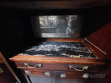 credenza liberty con inserti in metallo specchio e piano in marmo