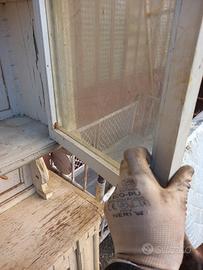 ANTICA CREDENZA LACCATA LEGNO MASSELLO.APPARTENENTE ANTICO EMPORIO.DOPPIO CORPO.RESTAURARE A PIACIMENTO. 188X40CM H234