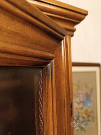 Mobile elegante e ben costruito, realizzato in massello e mdf con rifinitura in noce. Tre ampie ante vetrate con ripiani ideali per utilizzo come libreria, piattaia o esposizione oggettistica della casa. Tre vani inferiori con ante chiuse. Le misure sono: 140 x 40 cm H. 197