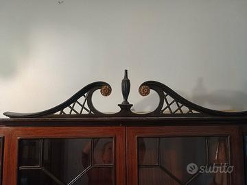 Vendo causa trasloco credenza/libreria/vetrina in stile Chippendale, caratterizzata da un frontale spezzato ("breakfront") e dettagli con elegante combinazione di mogano e profili scuri.