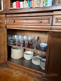 Credenza/libreria antica in legno massello con ante e cassetti. Buono/ottimo stato Dimensioni: 197x42x219h Prezzo da concordare
