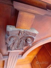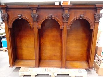 Credenza a 3 ante con alzata libreria in noce massello. Metà XX° secolo (circa 1950) Dimensioni: 210 x 43 x 224 h. credenza 83 h. libreria 141