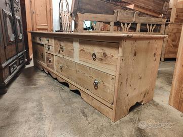 Credenza in abete arte povera, realizzata a partire da vecchi cassetti originali, trattata antitarlo e pronta all'uso. Misure 206x62x63 Posso consegnare o spedire. Tutti gli articoli disponibili in tempo reale sul sito de La Bottega del Pablo