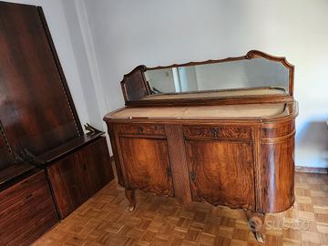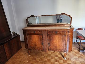 vendo credenza madia antica vintage in legno di noce con specchiera, due cassetti e due scomparti con ripiani.