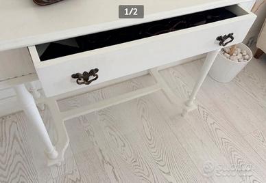 Credenza consolle bianca antica inglese di legno massello restaurata shabby con cassetto grande. Bellissima e di valore. Non è un prodotto commerciale. 90x48. NO trattabile