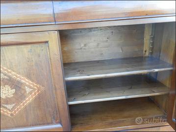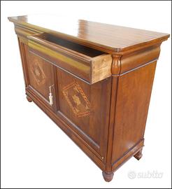 Questa elegante credenza in noce massiccio è un vero gioiello di artigianato classico. Le sue ante intarsiate con delicati motivi floreali in rilievo aggiungono un tocco di raffinatezza a questo mobile dal design tradizionale. Le linee sinuose e i piedini torniti conferiscono un'aria aristocratica, mentre la robusta struttura in legno pregiato assicura una lunga durata. Uno spazioso vano interno offre ampio spazio per riporre oggetti preziosi o stoviglie di famiglia. Un'aggiunta di charme in ogni ambiente, questa credenza diventerà un pezzo da collezione da tramandare di generazione in generazione.