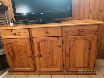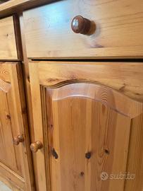 Credenza in legno massello stile rustico/montagna.Mobile solido e robusto con venature naturali.3 cassetti e 3 antine. Misure : lunghezza 145 profondità 45 altezza 83.